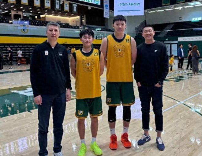 这次郭士强指导特地去到旧金山大学探望王俊杰和赵维伦,对于他们两个来说,真的特别有排面。而且师徒三人也进行了合影。郭士强指导穿着一套黑色的紧身休闲服。脚上是一双白色的运动鞋。才50多岁,头发很多都白了!王俊杰和赵维伦穿着旧金山大学篮球队的训练服,赵维伦穿着一双黄色的鞋子,王俊杰则穿着一双红色的鞋子。师徒三个人开心合影!