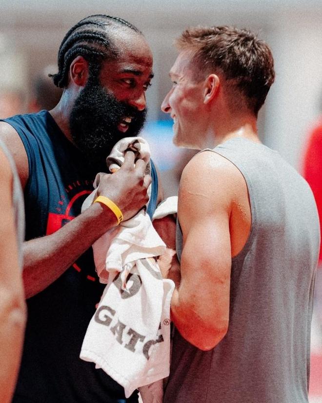 哈登则还是心情大好,脸上一直带着笑容,看来很满意球队的阵容。泰伦卢此前采访就已经明确表态要给他减压,不会让他长时间留在场上,如今他身后还有保罗,可以在他休息的时候掌控全局。一旦哈登能够保持着充足的体能,那他的表现还是值得期待的,新赛季快船究竟会有怎样的表现,就让我们一起期待吧。