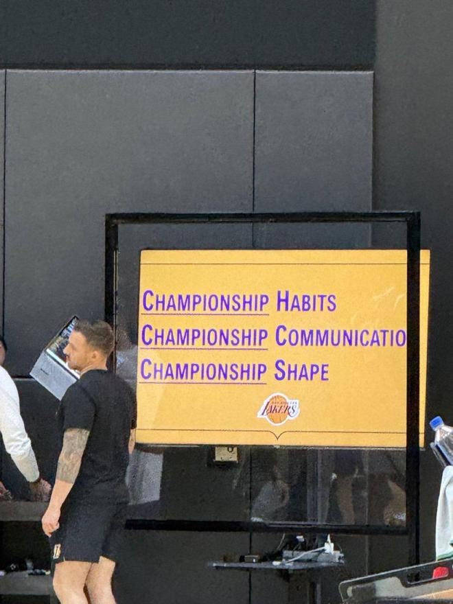 雷速体育10月5日讯 湖人队在位于埃尔塞贡多的UCLA健康训练中心展示了他们的新赛季口号,“Everything is built for a championship run”(一切为冲击总冠军而建)被悬挂在训练馆显眼位置,明确传递出球队在2025-26赛季的雄心壮志。