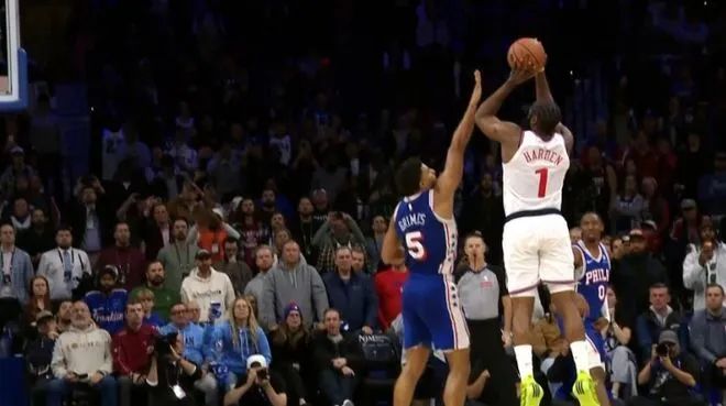 记者询问:“在第四节还剩 6.3 秒时,为什么詹姆斯·哈登的三分出手没有被判犯规?”